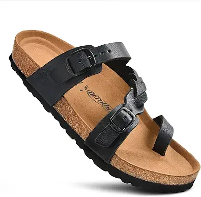 AEROTHOTIC Comfy Memory Foam Cork Sandals for Women Cute Dressy Adjustable Strappy Split Toe Slip On Vacation Essentials Women Footwear Open Toe Arch Support Slides