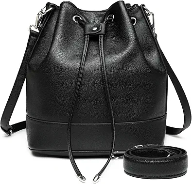 AFKOMST Leather Bucket Bags and Drawstring Crossbody Purse for Women Medium Tote and Hobo Handbags with 2 Shouder Straps