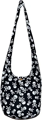 Skull Bohemian Boho Hobo Hippie Gothic Crossbody Bag Purse 33" Black