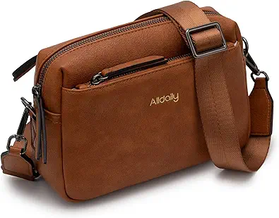 Alldaily Small Triple Zip Crossbody Purse for Women, Vegan Leather Phone Bag with Wide Shoulder Strap