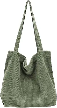 ALUWU Corduroy Tote Bag for Women Girl Canvas Shoulder Handbags Cute Large Purse