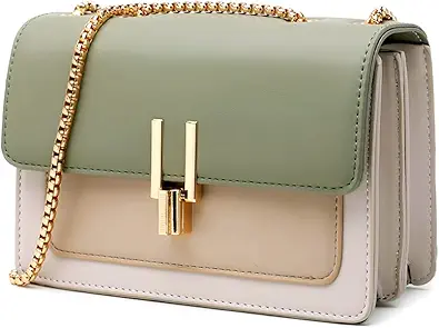 AMHDV Small Shoulder Chain Bag Color Block Crossbody Purse Square Flap Leather Handbag for Women
