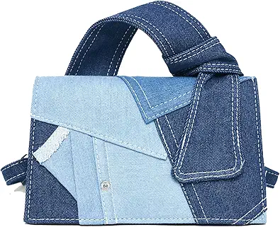 Purse for Women Patchwork Shoulder Bags, Mini Purse Crossbody Bag Denim Top Handle Clutch Handbag
