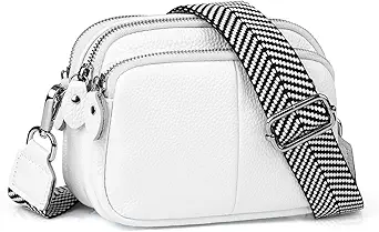 befen Small Genuine Leather Camera Crossbody Bags for Women Triple Zip Cross Body Purses Handbag with Wide Strap