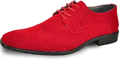 bravo! Men Dress Shoe King Classic Lace-up Oxford Plain or Cap Toe or Wingtip Leather Sock Medium and Wide Width Size from 6 to 18 Black Brown Cognac Blue Purple Red