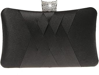 Fashion Womens Jane Satin Diamante Clutch Rhinestone Evening Bridal Prom Party Handbag Crossbody Purse Chain Bag