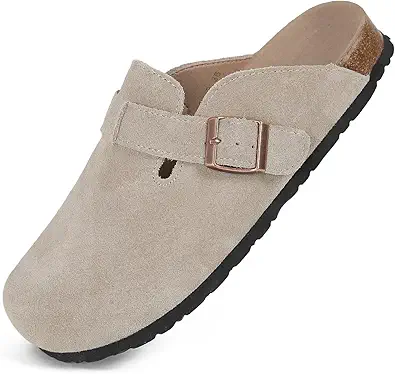 Dumalum Suede Clogs for Women and Men - Adjustable Buckle Slip-on Cork Footbed Mules with Antislip Sole - Unisex Slippers