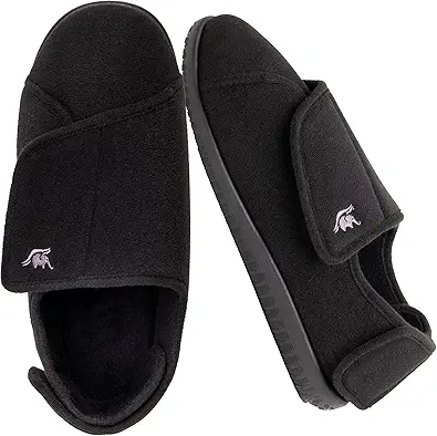 Men's Memory Foam Diabetic Slippers with Adjustable Closure, Extra Wide Comfy Warm Plush Fleece Arthritis Edema Swollen Diabetic House Shoes Machine Washable with Anti Slip Sole