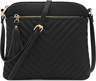FashionPuzzle Chevron Quilted Medium Crossbody Bag with Tassel Accent