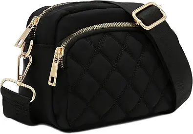 FashionPuzzle Quilted Nylon Crossbody Bag with Wide Strap