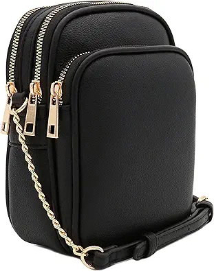 FashionPuzzle Triple Zip Small Crossbody Bag