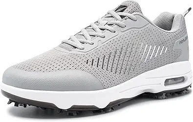 FENLERN Golf Shoes Men, Spiked, Breathable Mesh Upper, Cushioning