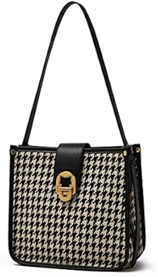 FOXLOVER Houndstooth Fabric Shoulder Bag for Women Top Handle Bucket Purse Casual Retro Portable Adjustable Straps