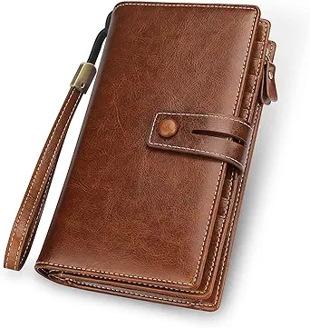 FT FUNTOR Women's Big Fat RFID Blocking Wallet Leather Zip Around Clutch Large Phone Organizer Wristlet