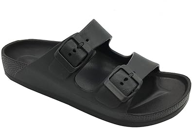 FUNKYMONKEY Men's Comfort Slides Double Buckle Adjustable EVA Flat Sandals