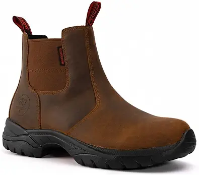 GOODVILLE Men's Work Boots, 6 inch Waterproof Soft Toe, Slip On Safety Oiled Leather Shoes