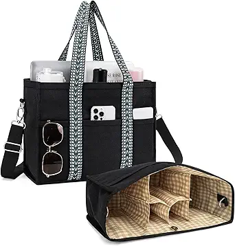 Canvas Tote Bag Set with Purse Bag Organizer Insert, Travel Tote Handbag Shoulder Bag with Zipper Crossbody Purse for Women