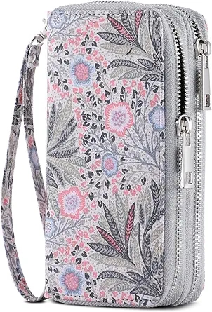 Double Zipper Wallet for Woman Clutch Purse with Cell Phone Holder for Smartphone/Card/Coin/Cash