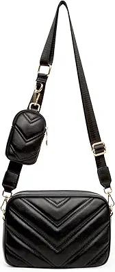 Herald Chevron Quilted Small Crossbody Bag with Coin Purse Pouch, Women Square Camera Side Shoulder 2 Size Handbags