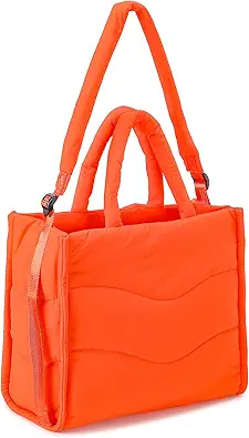 Herald Wavy Quilted Puffer Tote Bag for Women, Lightweight Puffy Satchel Handbag Crossbody Purse with Adjustable Strap