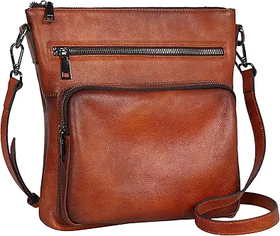 HESHE Genuine Leather Crossbody Purses for Women Soft Leather Purse Satchel Shoulder Bags with Multi Pockets