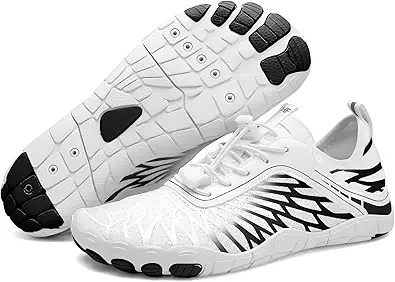 HF Hike Barefoot Shoes Healthy & Non-Slip Breathable Wide Toe Box Shoe, Flexible Lightweight Daily Wear Walking Shoes for Men & Women White/Black