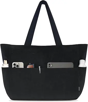 HOMESPON Large Corduroy Tote Bag for Women Everyday Shoulder Bag with Pockets and Zipper for Work Travel Vacation