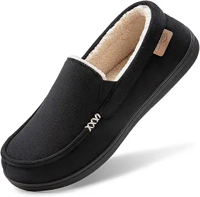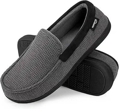HomeTop Men's Classic Moccasin Slippers Comfy Memory Foam Indoor House Shoes