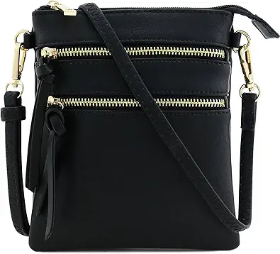 Small Lightweight Shoulder Bag for Women, Mini Multi Zipper Pocket Crossbody Handbag with Adjustable strap