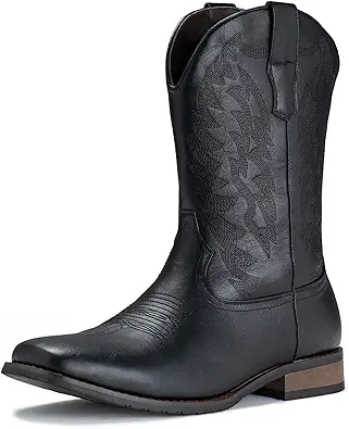 IUV Cowboy Boots For Men Wide Foot Square Toe Western Boots with Classic Embroidered Durable Slip on Boots