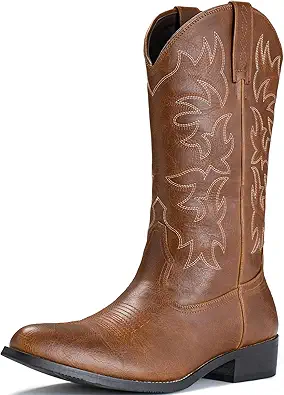 IUV Cowboy Boots For Men Western Boot Durable Classic Embroidered Snip Toe Boots