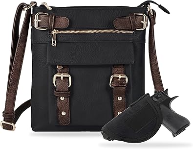 JESSIE & JAMES Triple Zip Crossbody Concealed Carry Bag Small Crossbody Camera Bag Purse with Wide Shoulder Strap