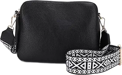 JESSIE & JAMES Rebecca Triple Compartment Lock and Key Lightweight Medium Crossbody Purse with Guitar Strap