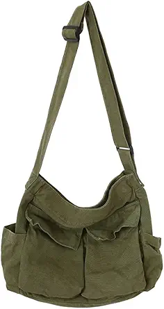 JQWSVE Canvas Messenger Bag Large Hobo Crossbody Bag with Multiple Pockets Canvas Shoulder Tote Bag for Women and Men