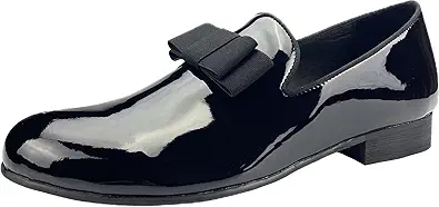 Justar Men's Patent Leather Tuxedo Dress Shoes Slip-on Loafers with Bowtie Wedding Party Prom Shoes for Men