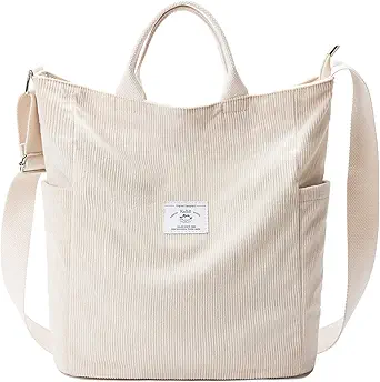 KALIDI Corduroy Tote Bag, Large Messenger Bag Shoulder Hobo Anti Splash Crossbody Zipper Bag Casual Work Shopping Women