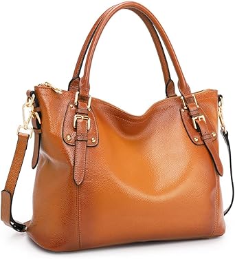Kattee Leather Handbags for Women, Medium Soft Shoulder Tote Crossbody Purses Bucket Bags with 2 Straps