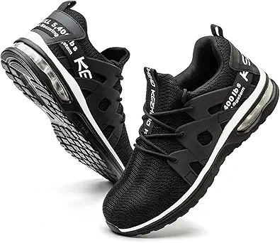 Kezhiho Steel Toe Shoes for Men Women Air Cushion Lightweight Work Shoes Comfortable Breathable Puncture Proof Slip Resistant Sneakers Indestructible Construction Industrial Safety Shoes
