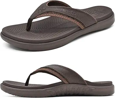 KuaiLu Men's Yoga Mat Leather Flip Flops with Arch Support Comfortable Cushion Walking Thong Sandals Slip On Indoor Outdoor