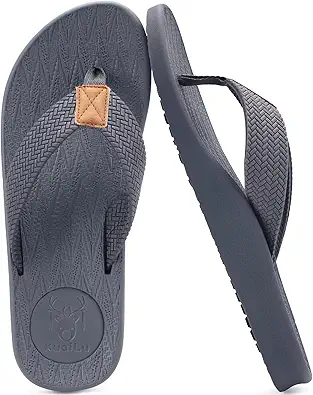KuaiLu Mens Flip Flops Arch Support Comfortable Summer Beach Thong Sandals Yoga Foam Cushion Slip on Slippers