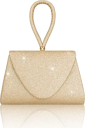 Larcenciel Women's Evening Handbags, Glitter Sequin Evening Purse w/Chain, Ladies Top-Handle Clutch Party Bag,7.9x5.3x1.6in