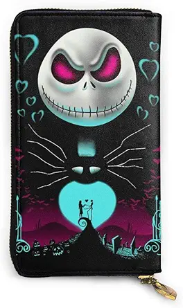 Nightmare Before Christmas RFID Blocking Money Organizers Genuine Leather Wallet Business Zip Wallet for Men,Women