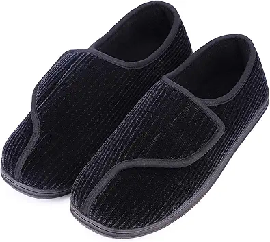 LongBay Men's Memory Foam Diabetic Slippers Comfy Warm Plush Fleece Arthritis Edema Swollen House Shoes