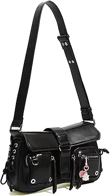 Small Shoulder Bag for Women, Black Y2K Purse with Cute Halloween Pendant for Women Handbag Clutch Classic Retro Bag Satchel