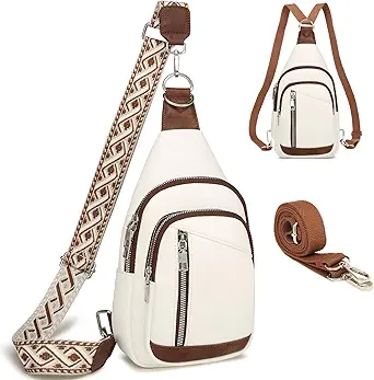 Sling Bag Crossbody Backpack - 2 in 1 Leather Cross Body Bag Fanny Pack with 2 Removable Straps