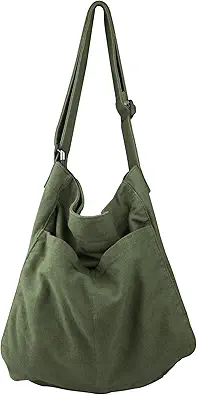 Canvas Hobo Crossbody Shoulder Tote Bag for Women and Men W/Multi-pocket Casual Purse Messenger Bags Travel Work