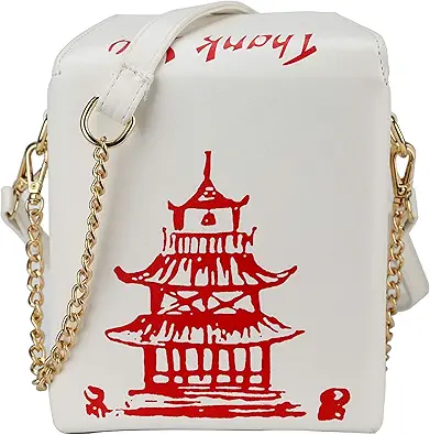 Tower Print Crossbody Shoulder Bag,Pu Chinese Takeout Box Totes Purse for Women