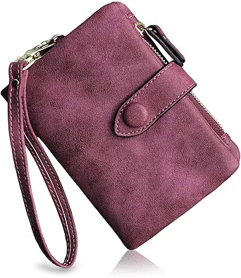 PofeeXIO Womens Small Bifold Leather Wallets RFID Ladies Wristlet with Card Slots id Window Zipper Coin Purse