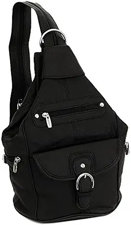Womens Leather Convertible 7 Pocket Medium Size Tear Drop Sling Backpack Purse Shoulder Bag