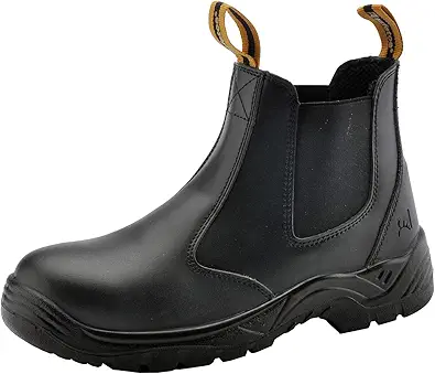 Mens Work Boots Steel Toe Chelsea Safety Boots Cow Leather Waterproof Lightweight Working Shoes